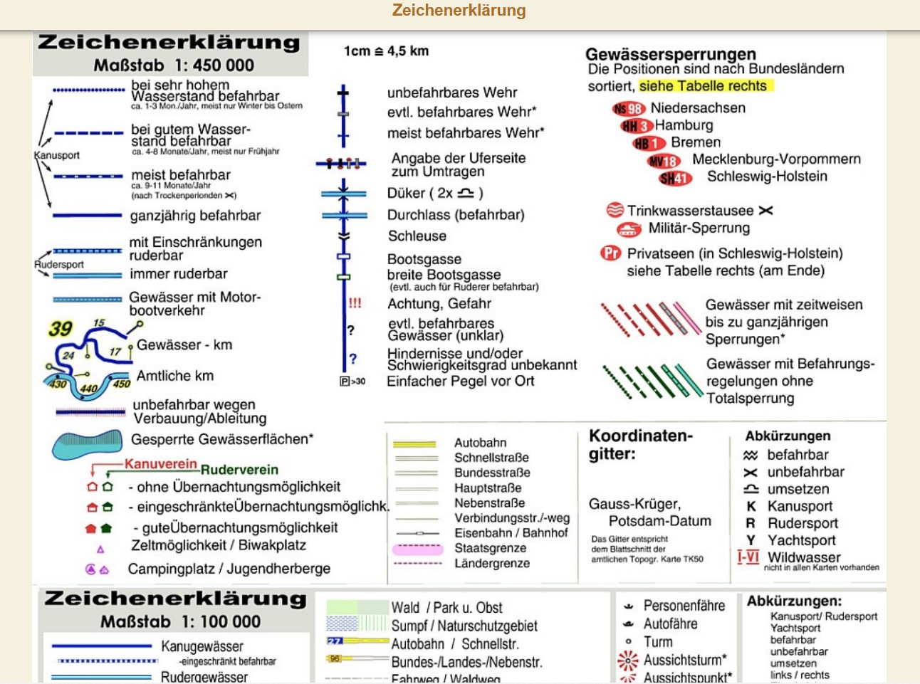 Unsere Karten, die im Maßstab 1:100000 und größer hergestellt werden, sind in bezug auf die Gewässer bzw. Wassersportinhalte im Gelände komplett überprüft. Jeder dargestellte Gewässer-km ist auch per Boot kontrolliert worden. Hier sind keine Schreibtischtäter am Werk, sondern passionierte Wassersportler, die all ihre Erfahrung an die Kartennutzer weitergeben. Seit kurzem werden mit gleicher Genauigkeit und Passion die Radwanderstrecken entlang der großen Gewässer erfasst.