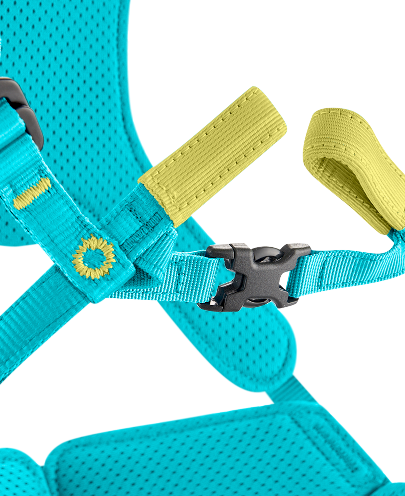Der Clou: Wird das Kind größer, verschiebt sich auch der Anseilpunkt und der Gurt „wächst mit“. Der FRAGGLE wird außerdem komplett nach den strengen Anforderungen des bluesign® systems hergestellt, um Umwelt und Ressourcen zu schonen.