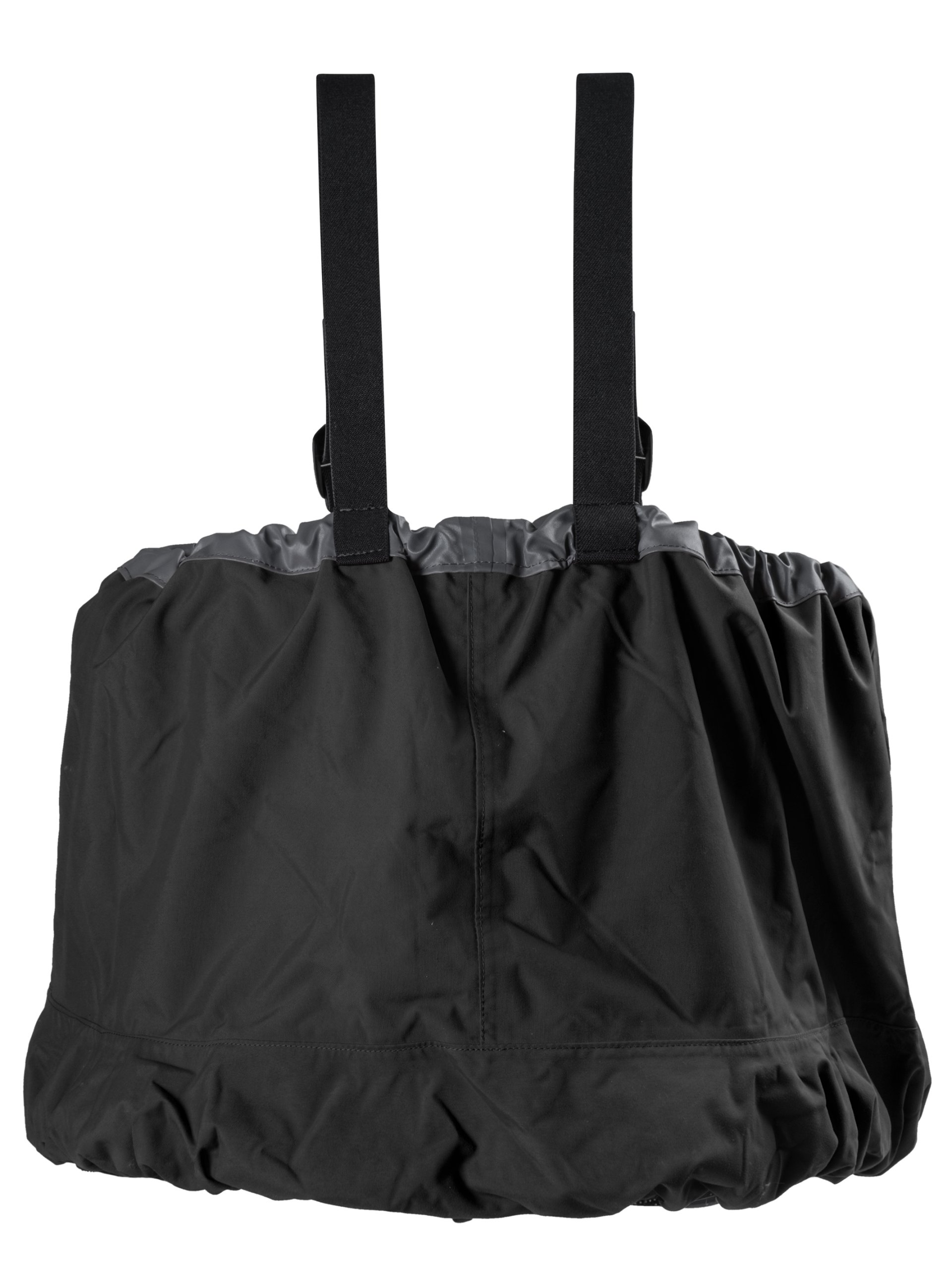 Der Nylontunnel sorgt für Komfort durch Atmungsaktivität, wenn er für ruhigere und wärmere Tage gelockert und abgesenkt wird, kann aber auch mit einem Taillengummizug und Hosenträgern gesichert werden, um das Wasser an raueren und kälteren Tagen fernzuhalten.