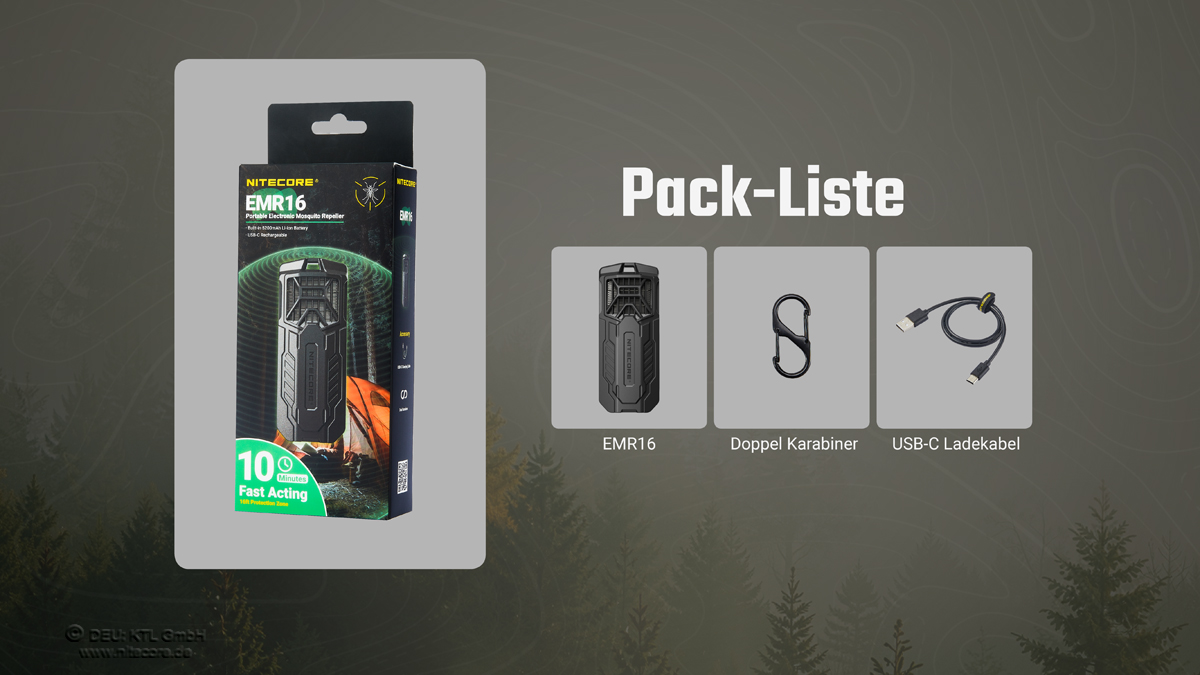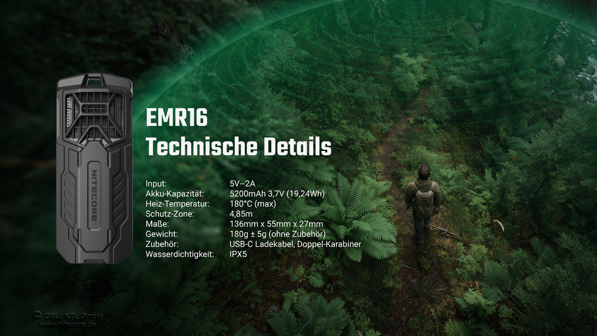 "Nitecore EMR16 - Mückenabwehr mit integriertem Akku" im Angebot als Komplettset