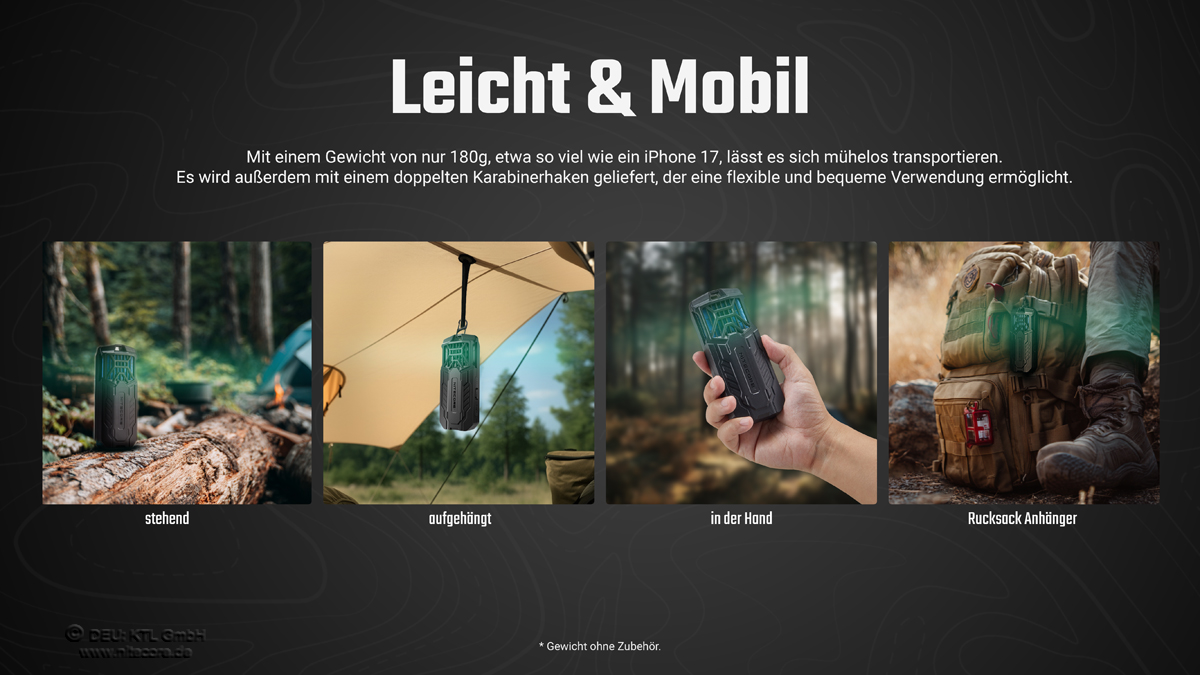 Dank moderner Heiztechnologie und integriertem Akku erzeugt das Gerät innerhalb weniger Minuten eine schützende Zone gegen Mücken - ideal für Camping, Angeln, Grillen oder entspannte Abende im Garten.