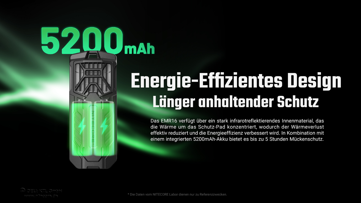 Eigenschaften "Nitecore EMR16 - Mückenabwehr, integrierter Akku - Akku 5200 mAh"