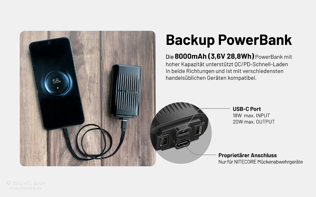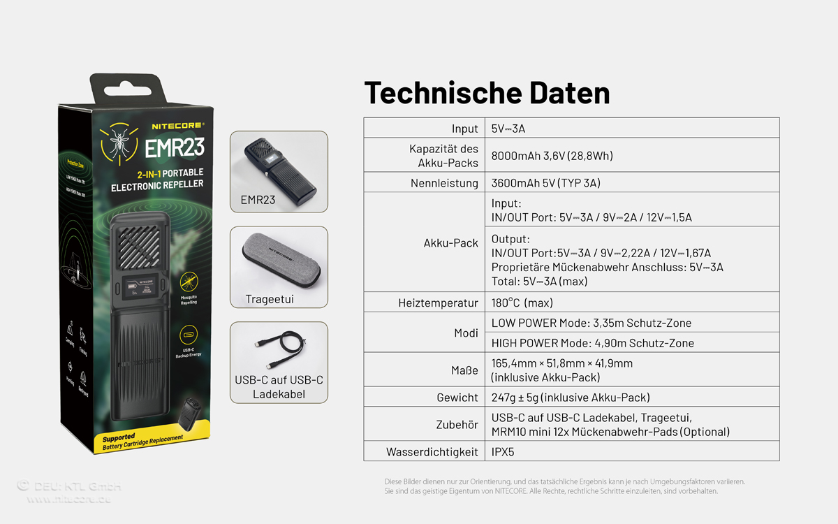 Eigenschaften "Nitecore EMR23 - Mückenabwehr mit OLED Display und 8000mAh Hochleistungs-Akkupack"
