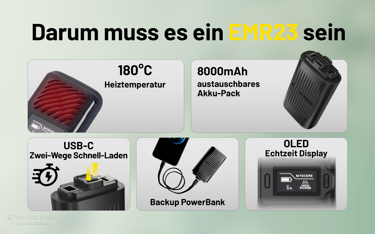 Nitecore EMR23 - Mückenabwehr mit OLED Display und 8000mAh Hochleistungs-Akkupack im Angebot als Komplettset