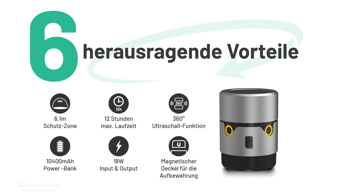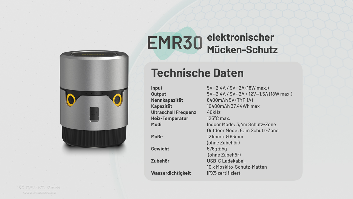 Das Nitecore EMR30 ist ein Tischgerät bzw ein Multiuse Akku-Gerät mit vielen Funktionen jedoch speziell zur Mückenabwehr mit gleichzeitiger Powerbank-Funktion.