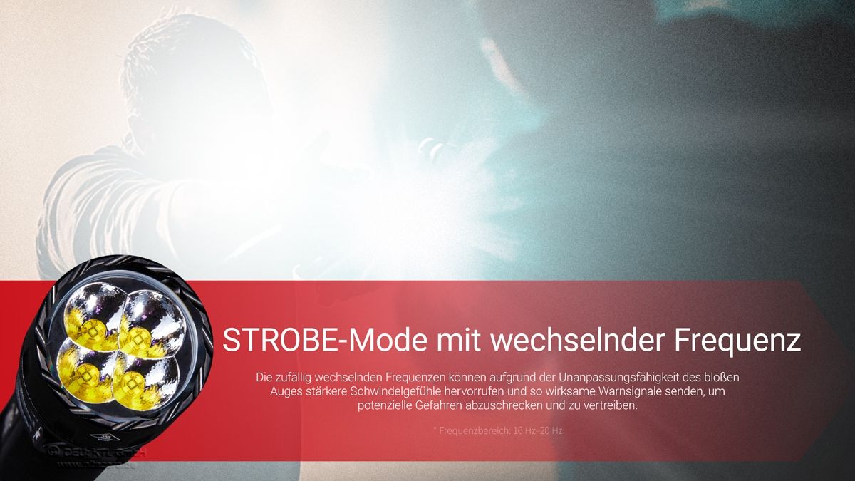 *LUMIN SHIELD, SEARCH und STROBE sind nur nutzbar mit einem Li-Ion Akku mit 20A Entladestrom!