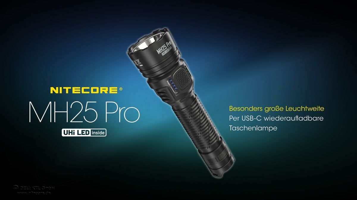 Die Nitecore MH25 Pro ist eine weitere LED-Taschenlampe mit der NiteLab UHi-LED. Mehr Lichtleistung, deutlich höhere Spotintensität, deutlich größere Leuchtweite, längere Brenndauer, ...