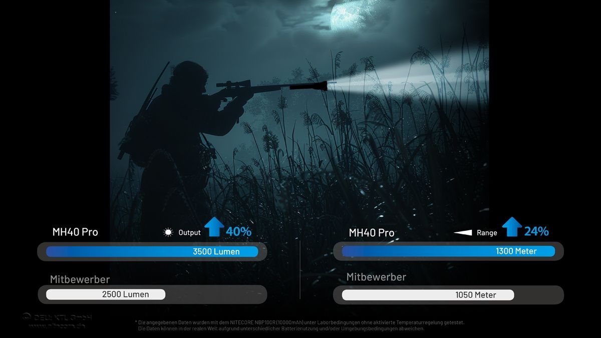Die Nitecore MH40 PRO eignet sich besonders für den jagdlichen Einsatz bei der Nachsuche oder für Rettungszwecke.