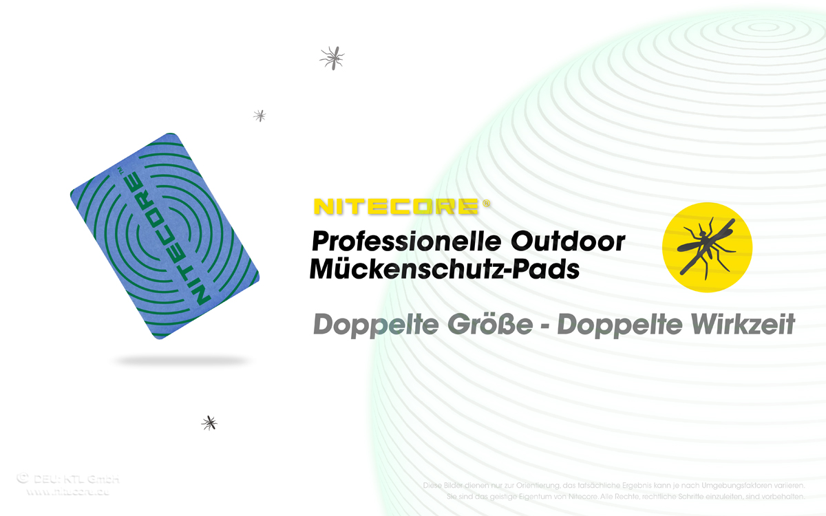 Neben einer verlängerten Wirkdauer, werden so auch die Betriebskosten aller EMR-Mückenabwehrgeräte gesenkt. Der Wirkstoff der Plättchen wird durch Erhitzung ausgebracht und ist nahezu geruchslos. Eine Verpackungseinheit der Nitecore MRM10 beinhaltet 30 Plättchen und reicht für ca. 180 Stunden. Die Verpackung ist Lufdicht verschweißt und somit unendlich haltbar.