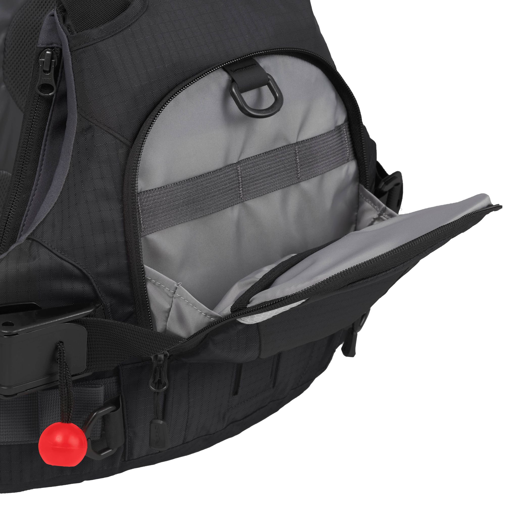 ✔ zwei leicht zu lösende Karabiner-Befestigungspunkte für Cowtail-Rettungssysteme und Befestigungspunkte für Sicherheitsutensilien wie Pfeife, Messer, Lichter oder Blitzlicht.