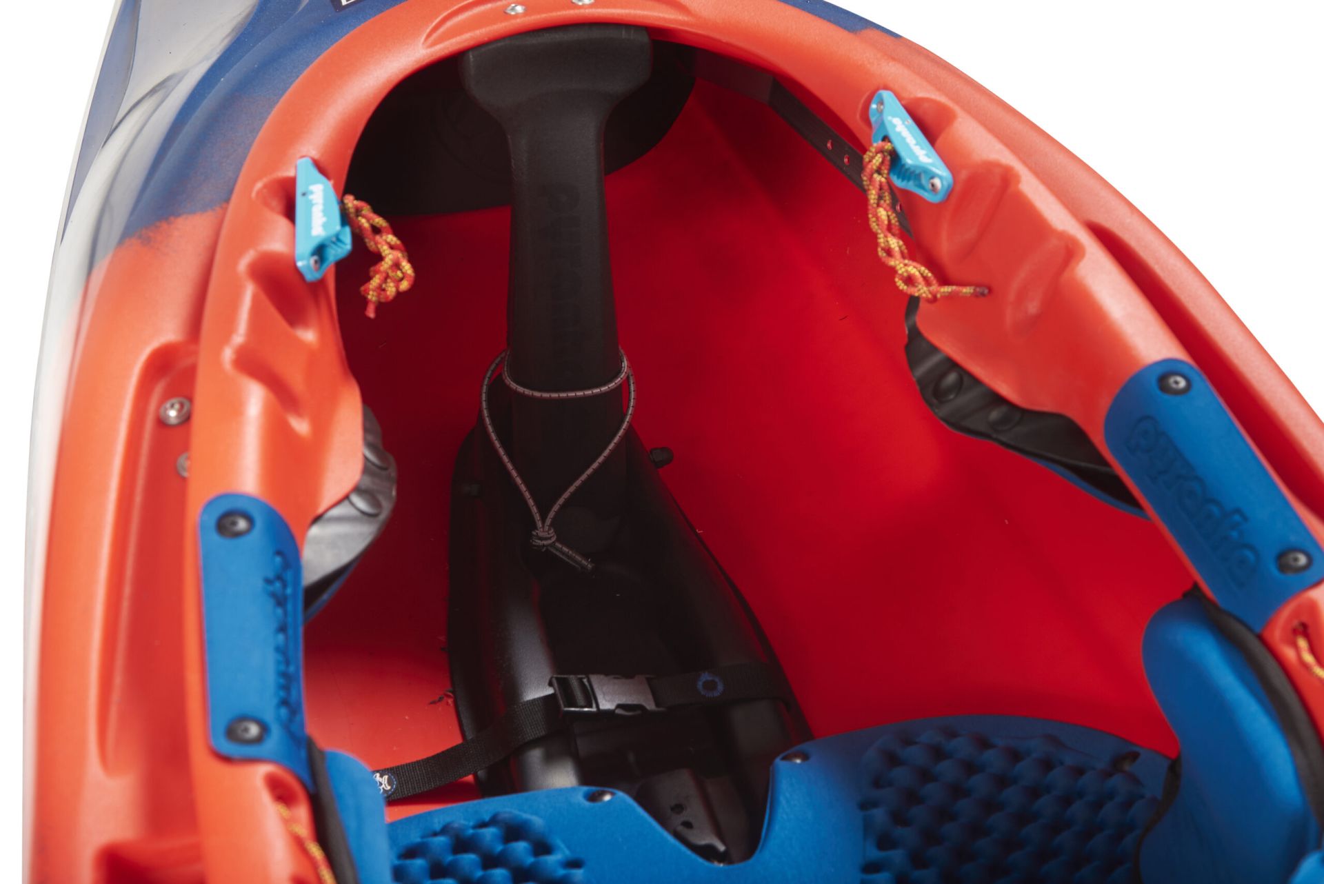 Mit dem Elite Outfitting rückt Pyranha außerdem von zusätzlichen Einbauteilen ab. Stattdessen werden den Thigh Hooker ähnlichen Schenkelstützen direkt am Kajak montiert.