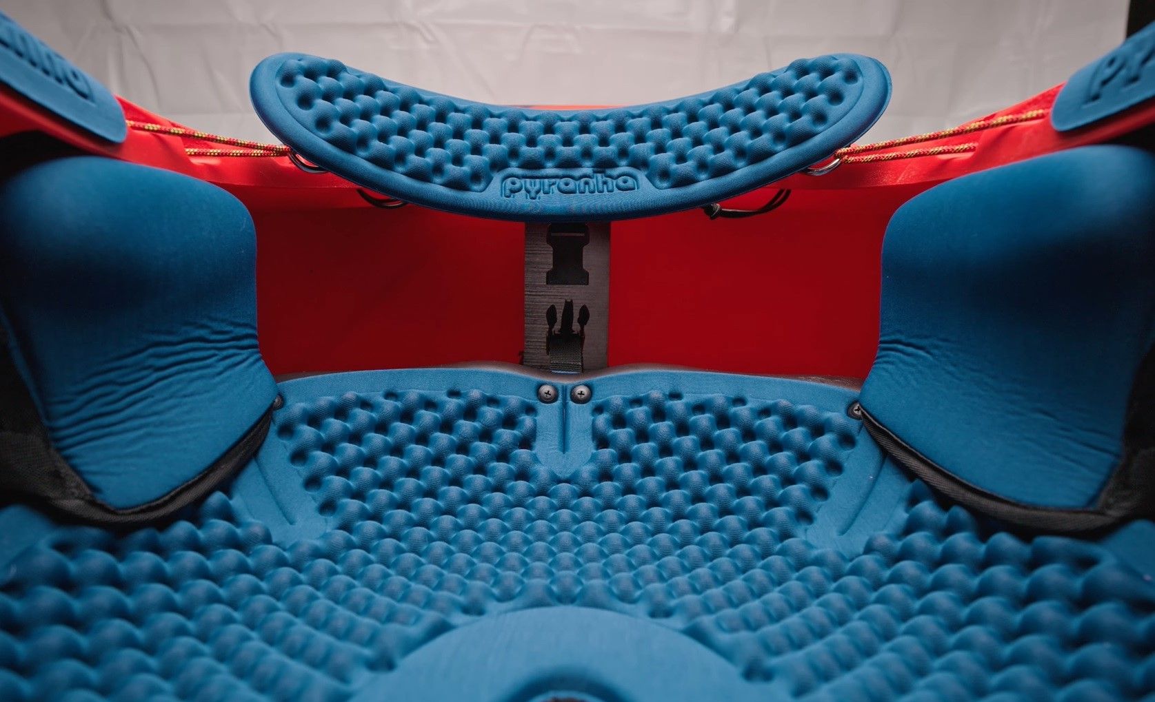 Pyranhas Elite Outfitting des ReactR verzichtet auf die bewährten Ratschengurte zur Fixierung des Rückengurts, sondern kommt mit einem Seilklemmensystem.