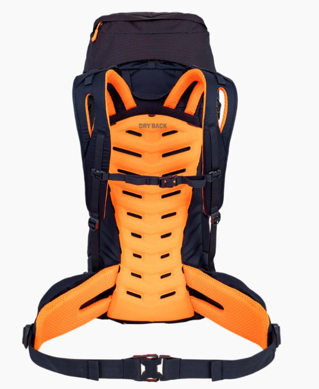 Das leicht anpassbares Dry Back Custom-Tragesystem verfügt über eine verstellbare Rückenlänge sowie anatomisch geformte, gepolsterte Schulter- und Hüftgurte für eine individualisierte Passform. Außerdem ermöglichen Lastkontrollriemen eine optimale Passform am Rücken über lange Strecken. Die vorgeformte Hüftflosse garantiert einen engen Sitz und eine gute Lastübertragung auf die Hüfte.