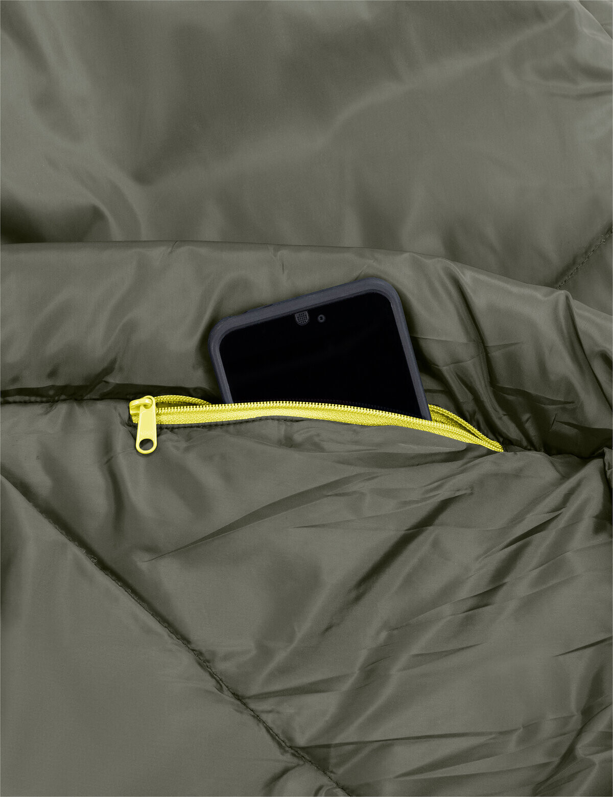 Die Kunstfaserfüllung leitet Feuchtigkeit vom Körper weg, wärmt – anders als Daune – selbst in nassem Zustand und trocknet schnell.