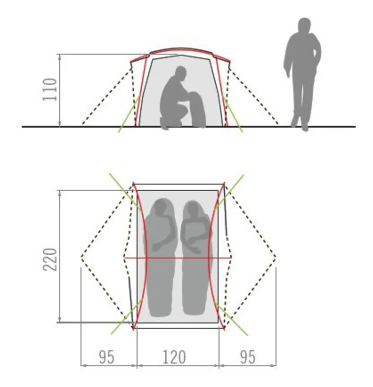 Knapp drei Kilogramm bringt es auf die Waage. Jeder der beiden Querschlafenden hat seinen eigenen Ausgang samt Apsis. Dadurch kann das Zelt äußerst angenehm durchlüftet werden.