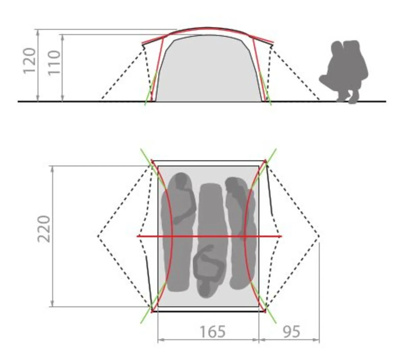Bei ihnen handelt es sich um neu aufgesetzte Klassiker. Nun weisen sie eine freistehende Ridge-Tunnel-Konstruktion auf, die mehr Platz bietet. Das 3 Personen Zelt wiegt knapp 3,5 Kilogramm.
