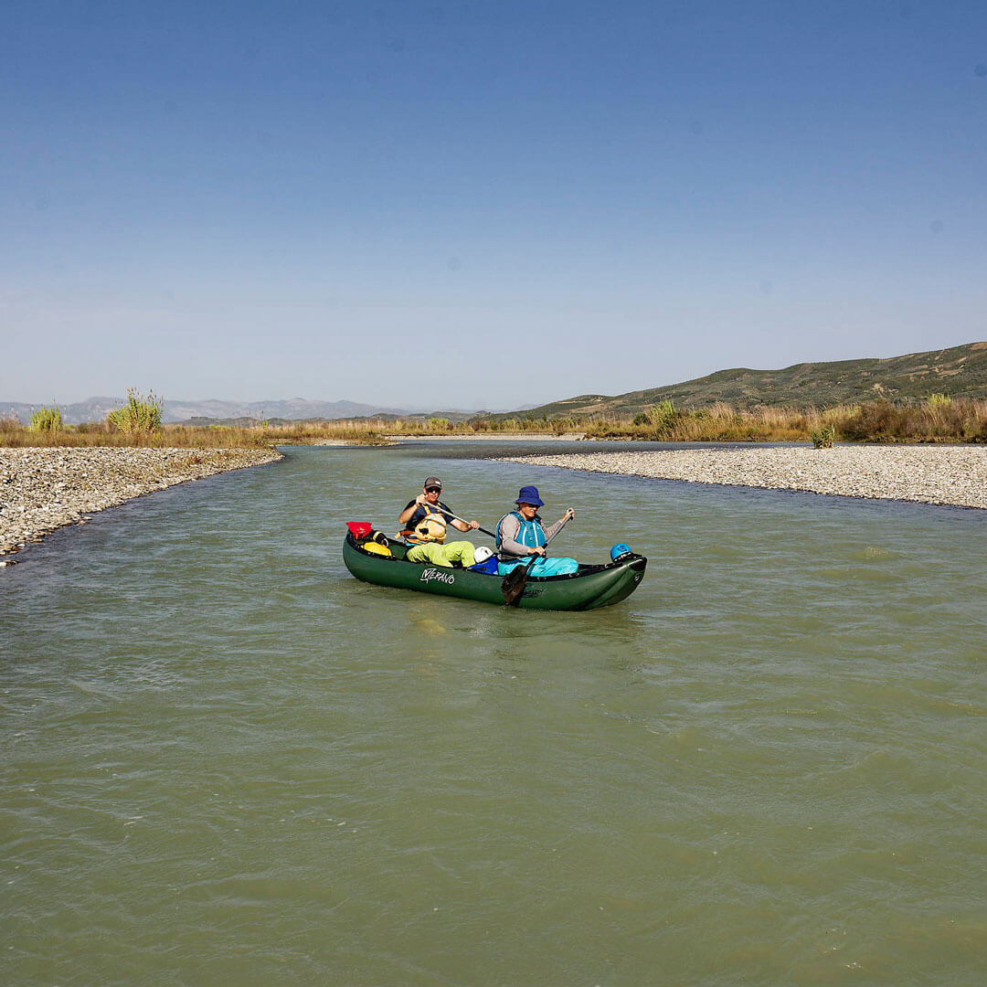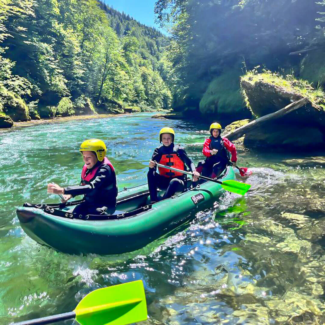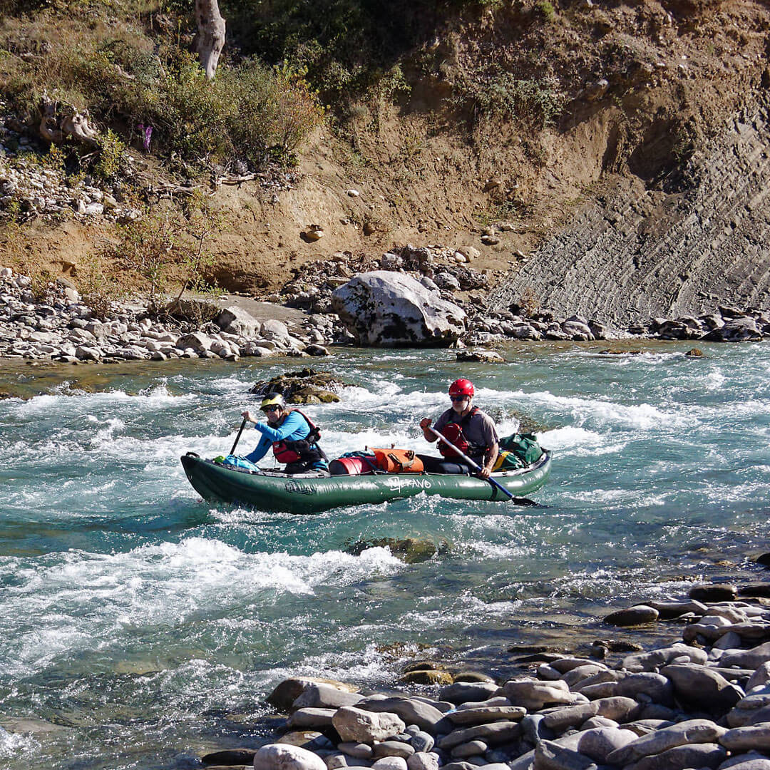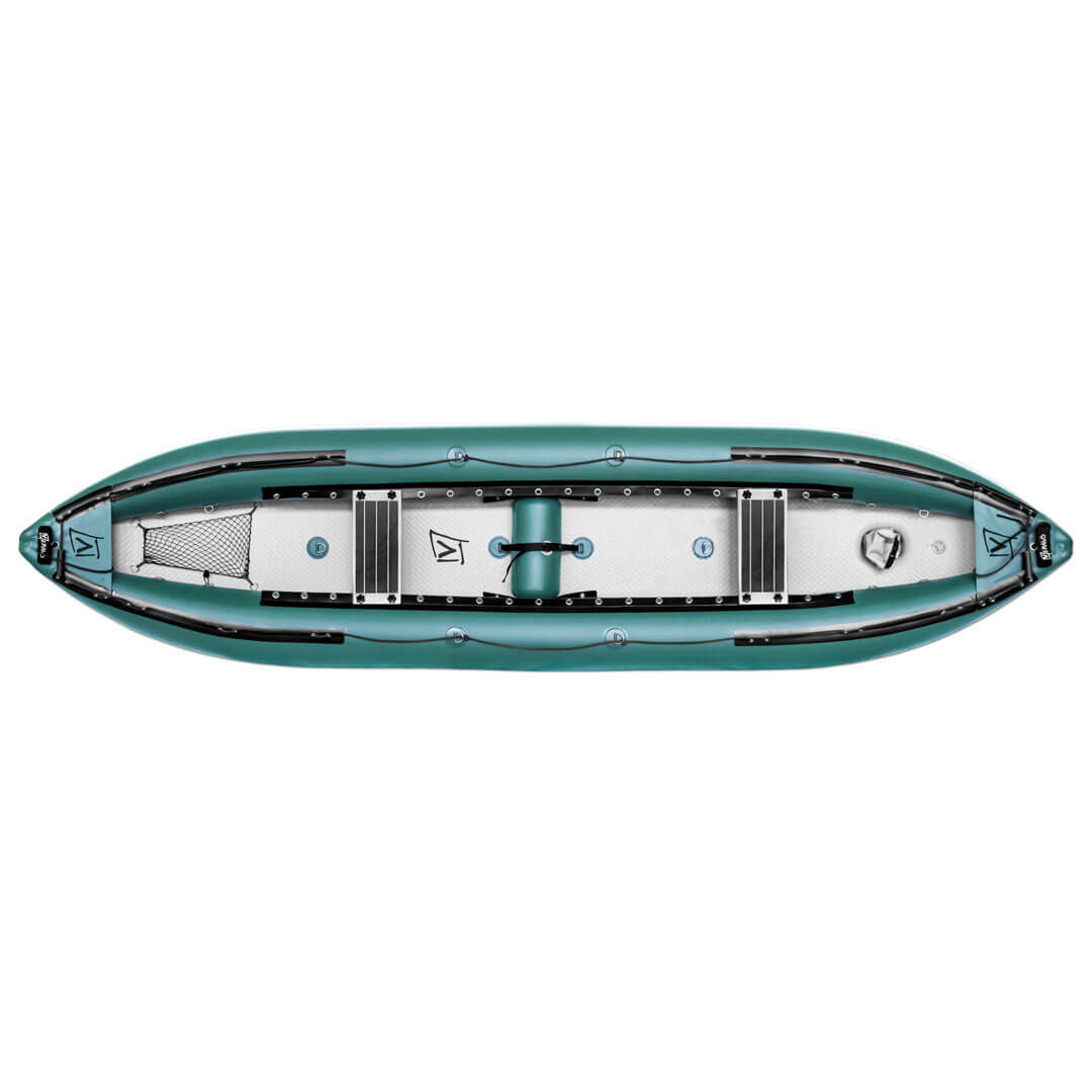 Mit einer Nutzlast von 350 kg lässt sich der Schlauchkanadier mit bis zu 3 Personen paddeln. Das großzügige Platzangebot macht auch Touren „mit großem Gepäck“ möglich.